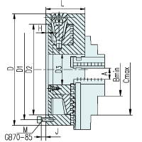 該產(chǎn)品是手動的盤絲型自定心卡盤,短圓柱連接型。