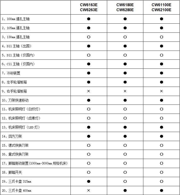2.4 完備的安全防護裝置供用戶選用……后防護、卡盤防護、花盤防護、刀架防護,三杠防護。使機床滿足《GB15760-2004 金屬切削機床 安全防護通用技術條件》的要求,或歐洲安全標準98/37/EC, 89/392EEC91/368EEC, 72/23/EEC……